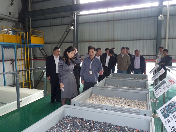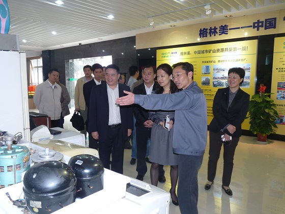 2011年10月14日,湖北宜昌市政府副市長吳靜率宜昌市政府有關部門和企業負責人一行20多人,在武漢格林美資源循環有限公司總經理王健和荊門格林美新材料有限公司常務副總經理孫文力陪同下參觀考察了荊門格林美城市礦產資源循環產業園??疾靾F一行參觀了電子廢棄物拆解車間、家電以舊換新專用倉庫、廢水處理中心和研發中心,認真聽取了王健總經理關于格林美在武漢和荊門構建循環消費再生資源回收體系、建設先進電子廢棄物處置工廠的情況以及未來規劃的匯報,并探討如何推進以先進技術為背景的循環消費再生資源回收體系試點建設。吳靜副市長高度肯定了格林美的再生資源回收模式,并表示宜昌市會吸取格林美的經驗,積極推進宜昌市再生資源回收體系的建設。